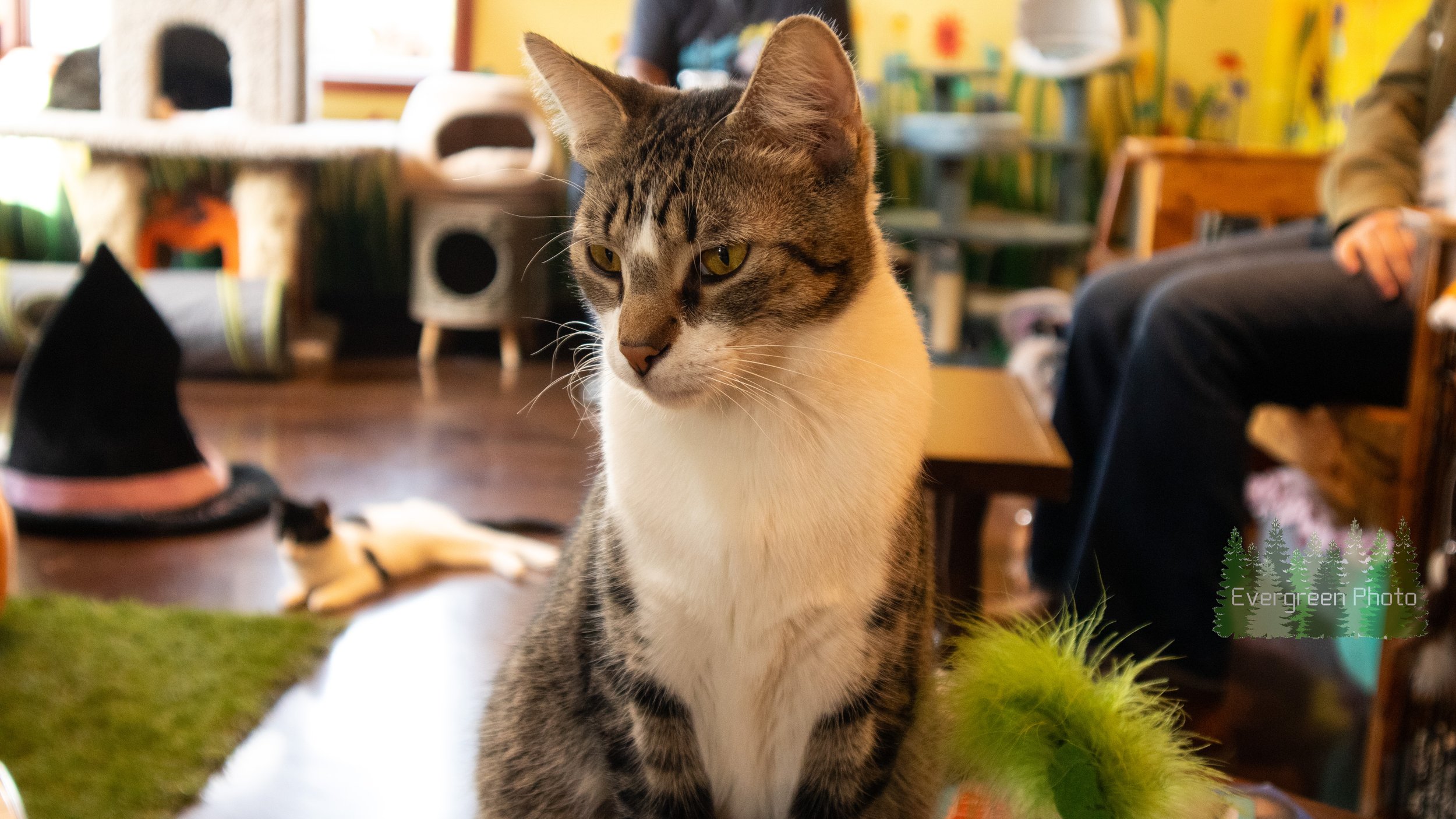 Most cats pictured here are available for adoption at The Region Cat Cafe!
